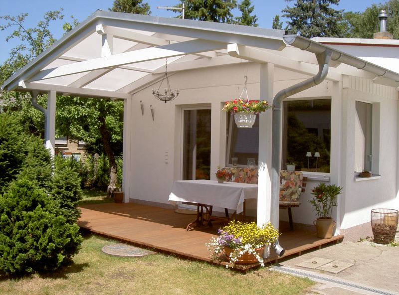 Verlängerung eines Anbaudaches als Terrassenüberdachung mit Stegdreifachplatten Holzbaulösungen